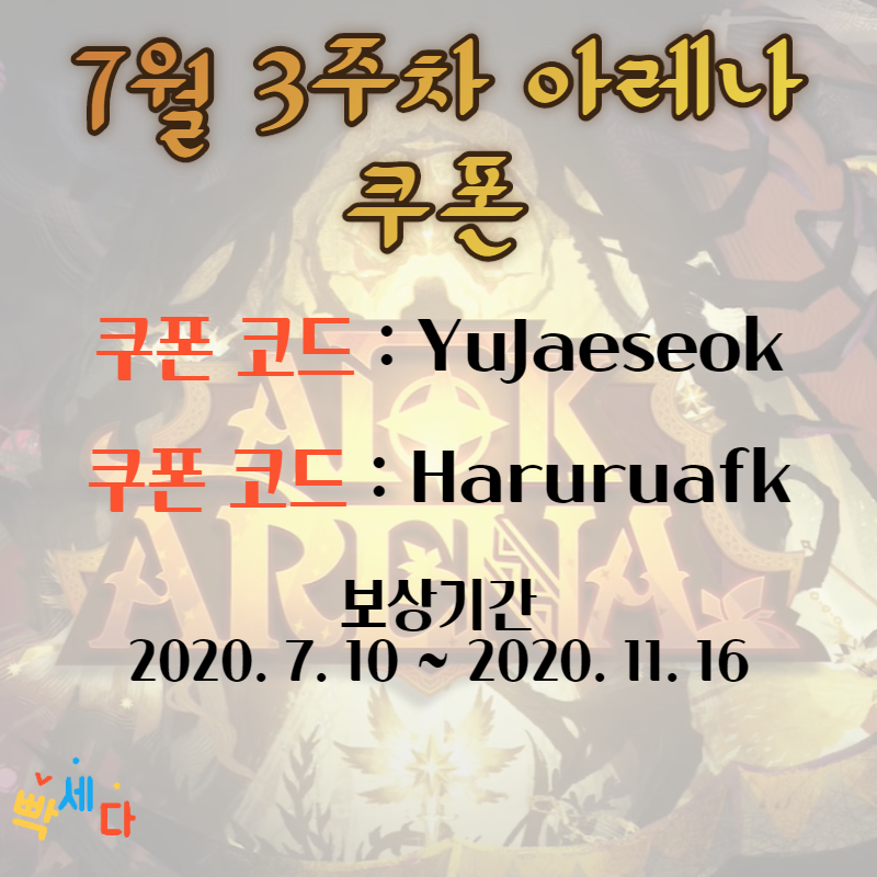 2020/07/14 - [GAME/AFK 아레나] - afk 아레나 7월 3주차 쿠폰코드 쿠폰입력 유재석 쿠폰 2020년 7월 최신 쿠폰