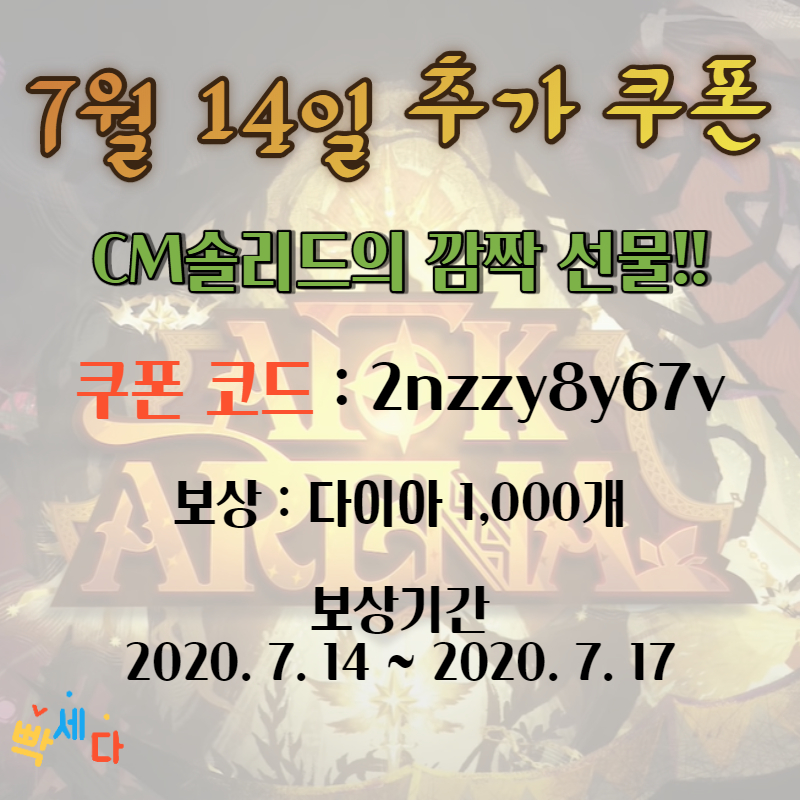 | afk 아레나 7월 최신 쿠폰 코드 CM솔리드의 초복 선물 afk아레나 2020년 7월 최신 쿠폰 (0) | 2020.07.16 |