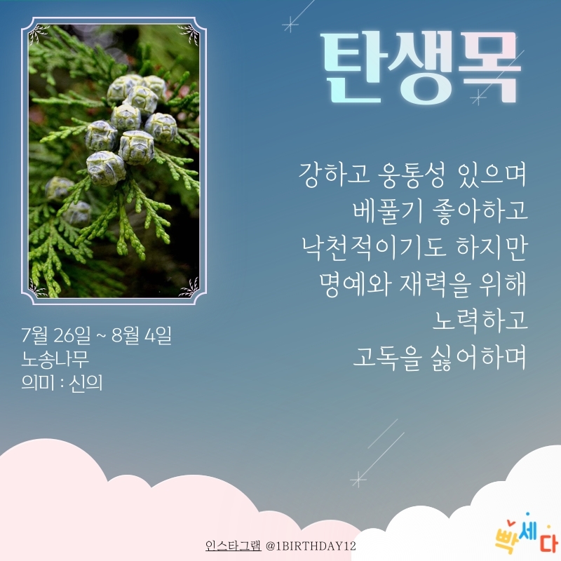 7월 26일 ~ 8월 4일은 노송나무예요.