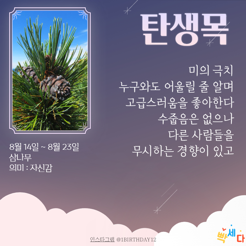 8월 14일 ~ 8월 23일은 삼나무예요.