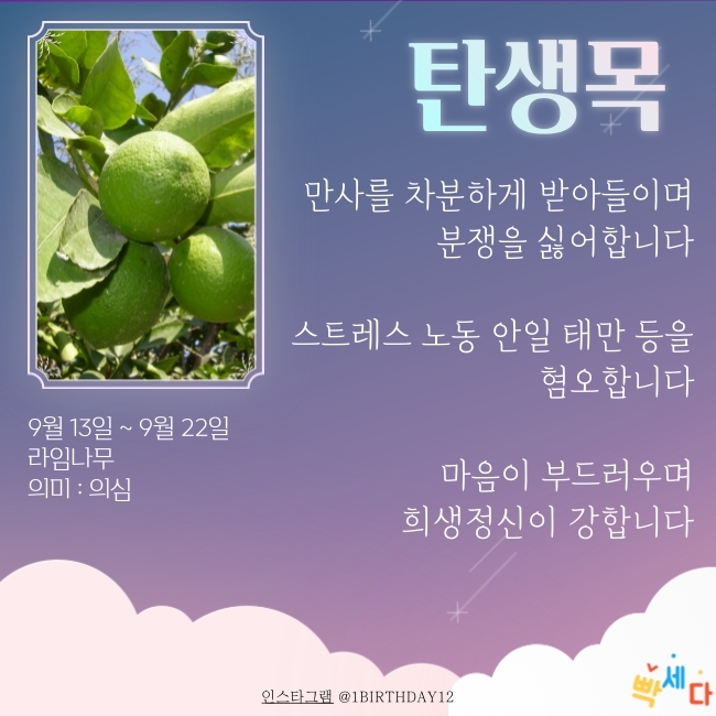 9월 13일 ~ 9월 22일은 "라임나무" 이예요.