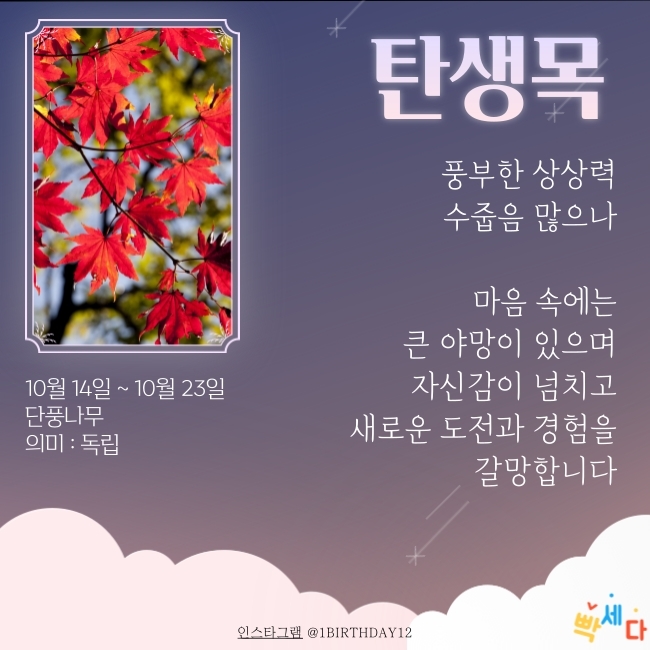 10월 14일 ~ 10월 23일은 "단풍나무" 이예요.