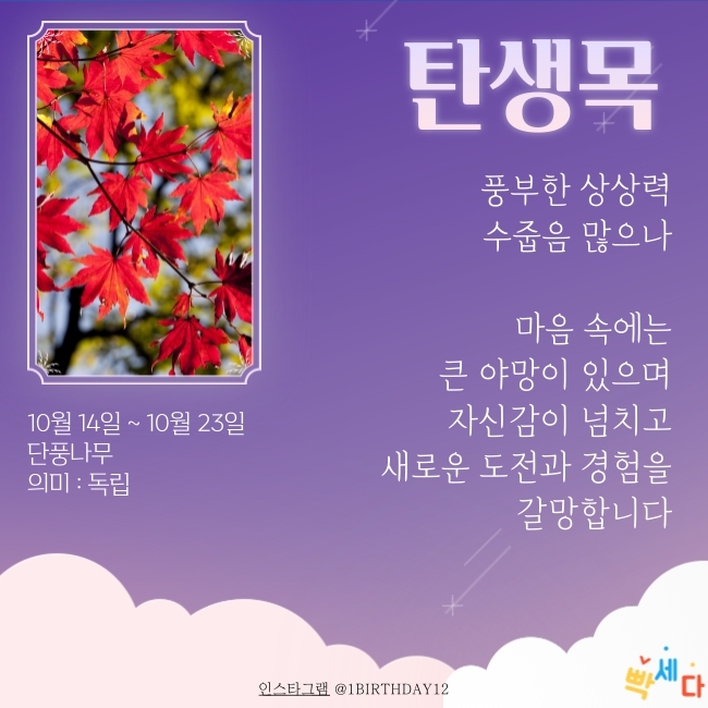 10월 14일 ~ 10월 23일은 "단풍나무" 이예요.