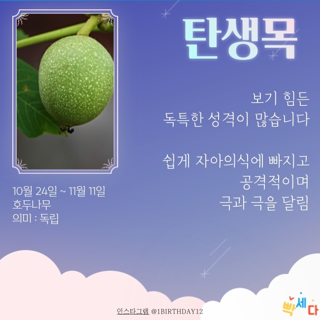 10월 24일 ~ 11월 11일은 "호두나무" 이예요.