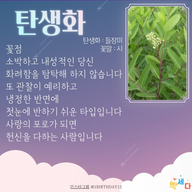 | 10월 26일은 무슨 날? 탄생화 탄생석 탄생목 10월 26일 탄생화는 수영 꽃점과 꽃말로 하루를 행복하게 (0) | 2020.11.22 |