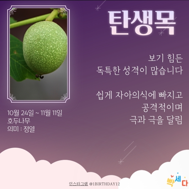 10월 24일 ~ 11월 11일은 "호두나무" 이예요.