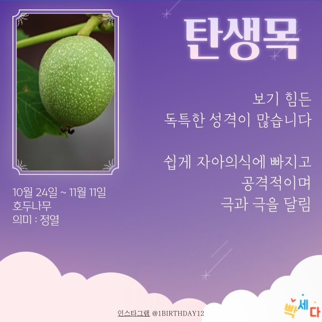 10월 24일 ~ 11월 11일은 "호두나무" 이예요.