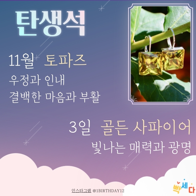 여러분 안녕하세요. 오늘 무언가 특별한 기분이 들지 않나요? 맞아요!! 11월 2일 태어나신 분들 모두 축하드립니다!! 11월 2일 자신의 탄생일에 대해 알아볼까요?? 11월 2일 탄생화 탄생석 탄생목은