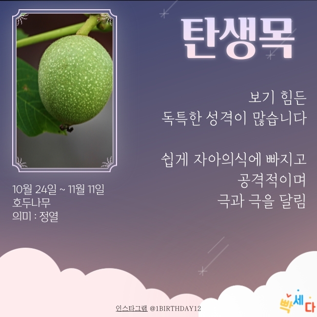 10월 24일 ~ 11월 11일은 "호두나무" 이예요.