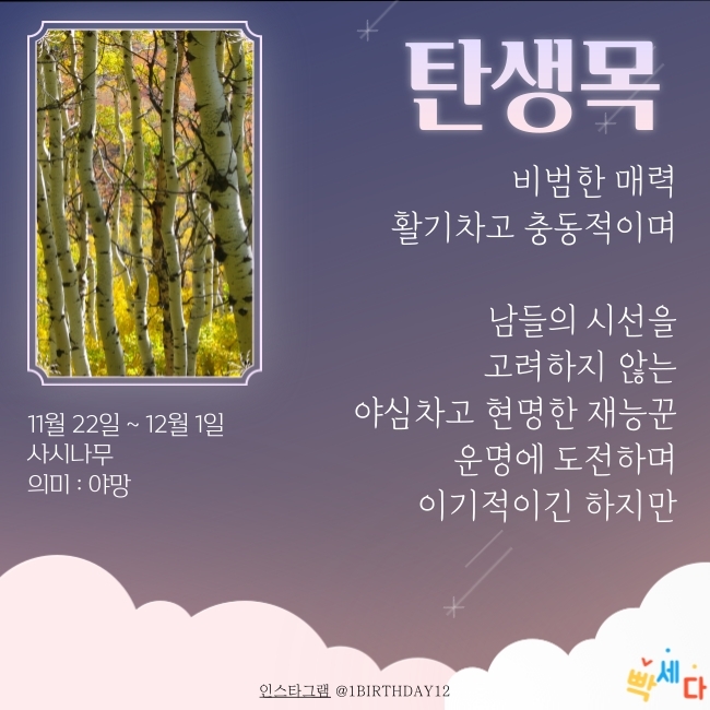11월 22일 ~ 12월 1일은 "사시나무" 이예요.