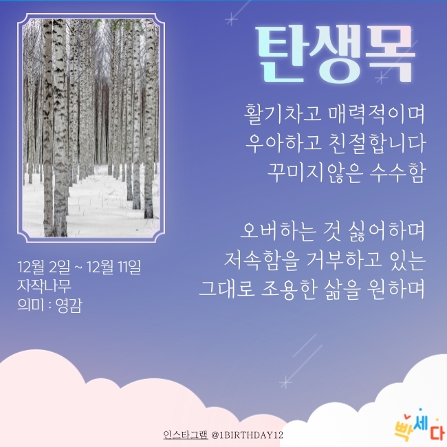 12월 2일 ~ 12월 11일은 "자작나무" 이예요.