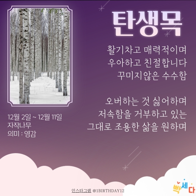 12월 2일 ~ 12월 11일은 "자작나무" 이예요.