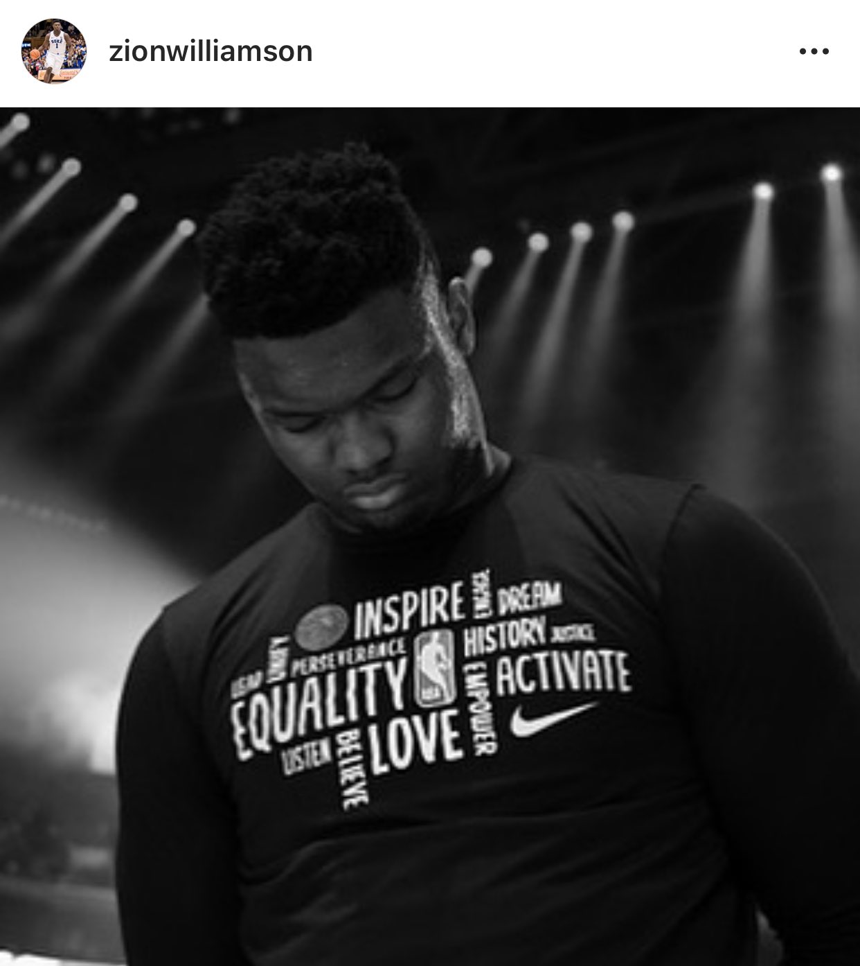 자이언 윌리엄슨 선수는 개인 인스타그램에서 글을 올렸습니다.