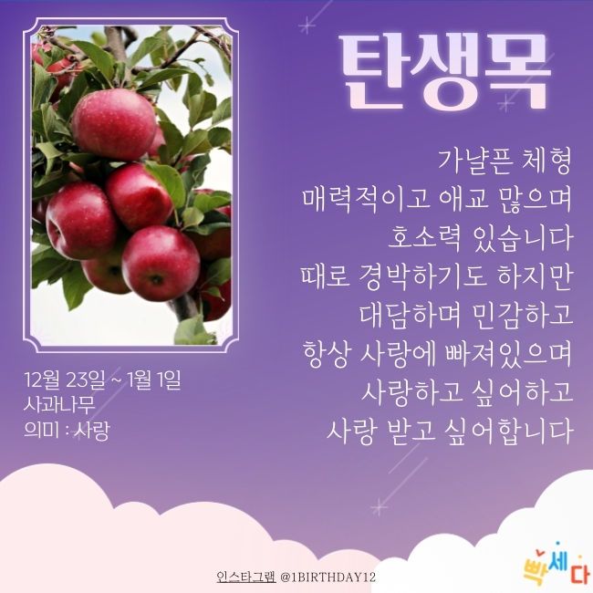 12월 23일 ~ 1월 1일은 "사과나무" 이예요.