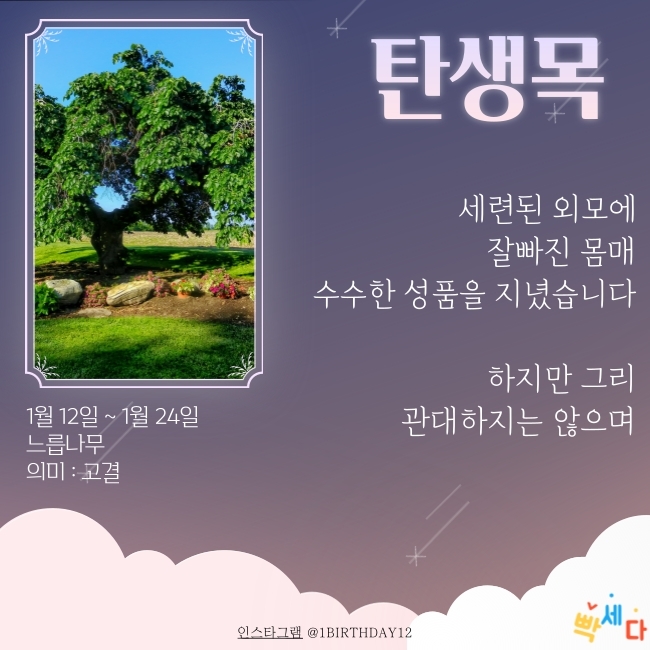 1월 12일 ~ 1월 24일은 "느릅나무" 이예요.