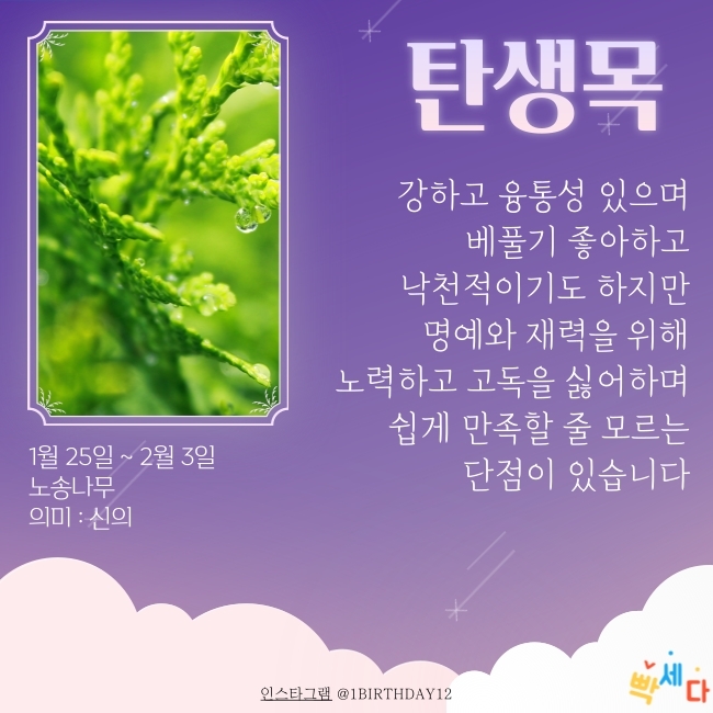 1월 25일 ~ 2월 3일은 "노송나무" 이예요.