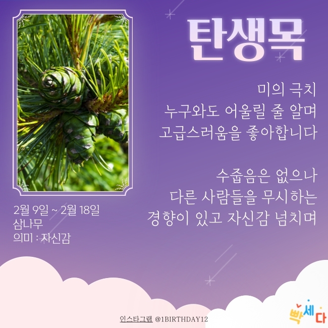 2월 9일 ~ 2월 18일은 "삼나무" 이예요.