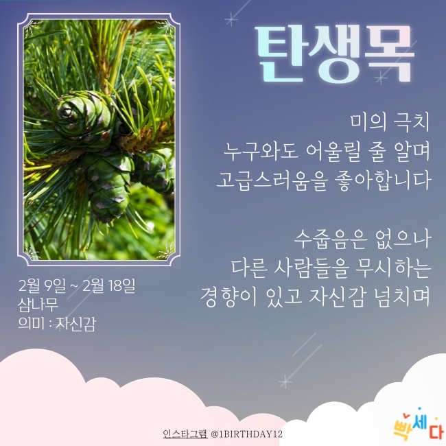 2월 9일 ~ 2월 18일은 "삼나무" 이예요.