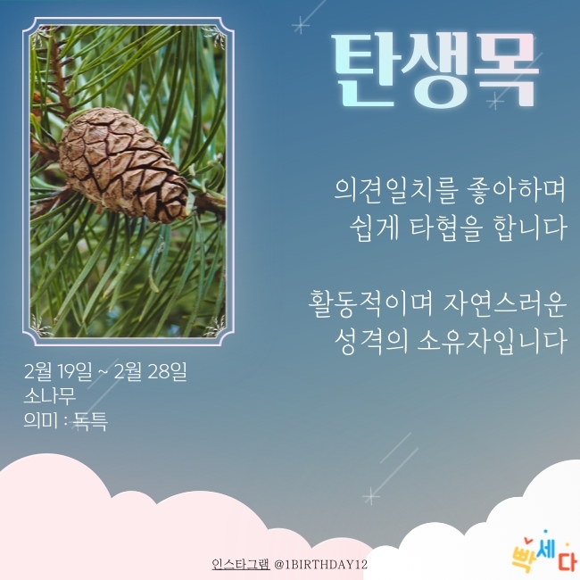 2월 19일 ~ 2월 28일은 "소나무" 이예요.