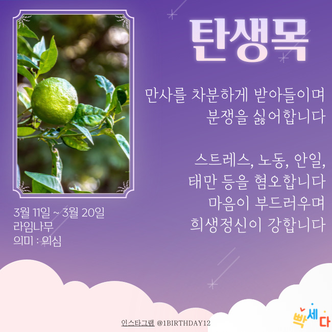 3월 11일 ~ 3월 20일은 "라임나무" 이예요.