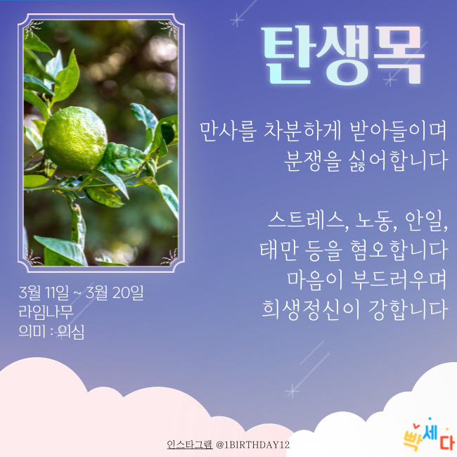 3월 11일 ~ 3월 20일은 "라임나무" 이예요.