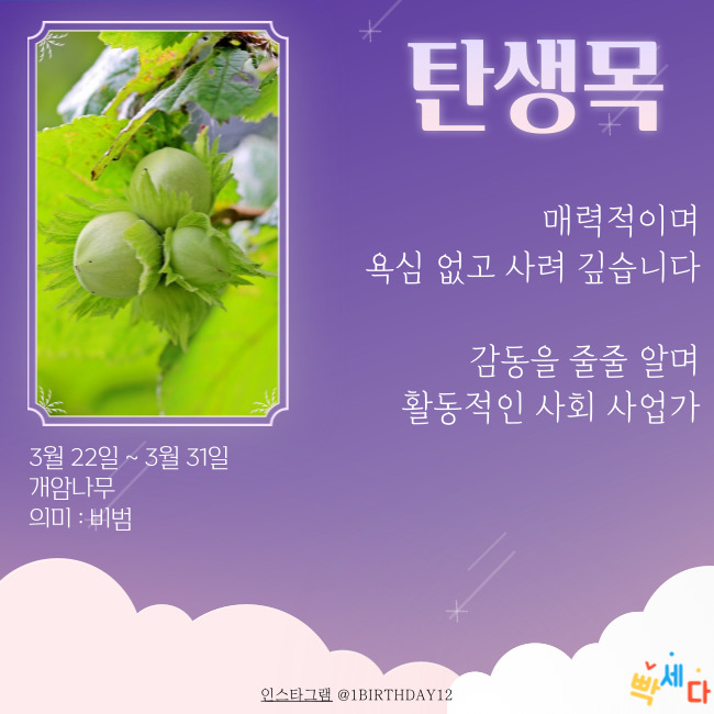 3월 22일 ~ 3월 31일은 "개암나무" 예요.