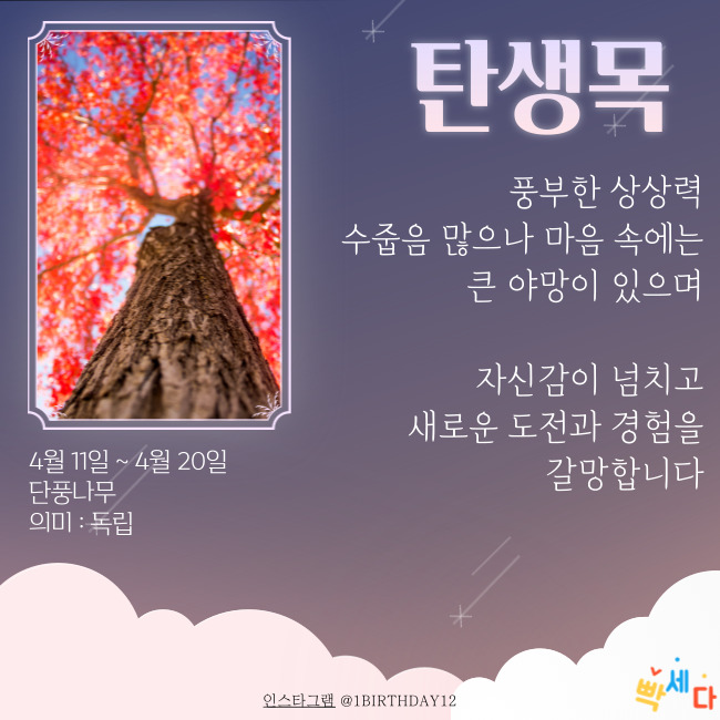 4월 11일 ~ 4월 20일은 "단풍나무" 예요.
