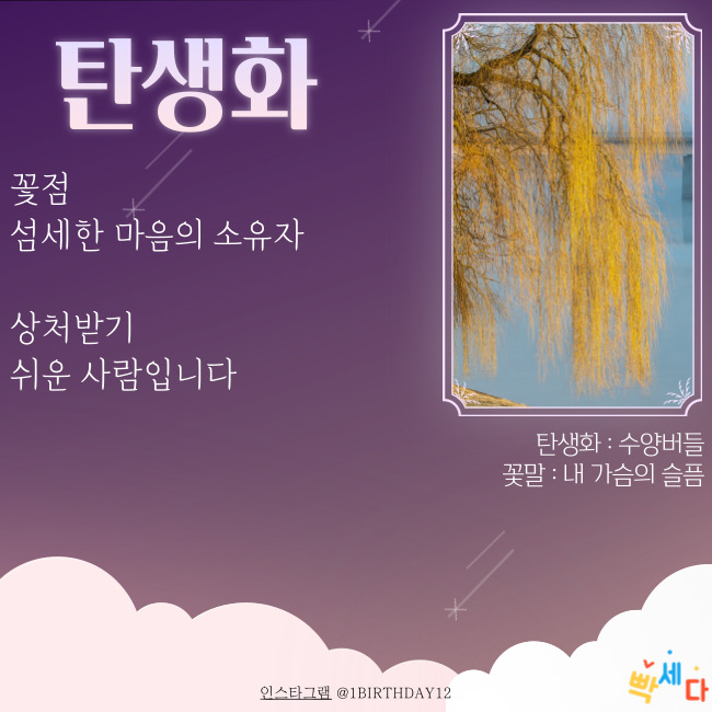 | 4월 22일은 무슨 날? 탄생화 탄생석 탄생목 4월 22일 탄생화는 수양버들 꽃점과 꽃말로 하루를 행복하게 (0) | 2021.04.18 |