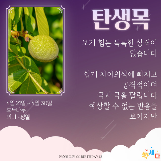 4월 21일 ~ 4월 30일은 "호두나무" 예요.