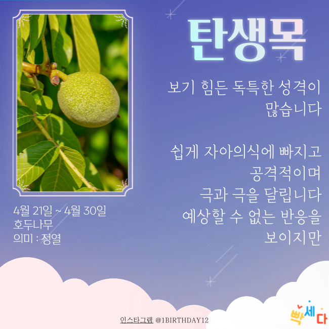 4월 21일 ~ 4월 30일은 "호두나무" 예요.