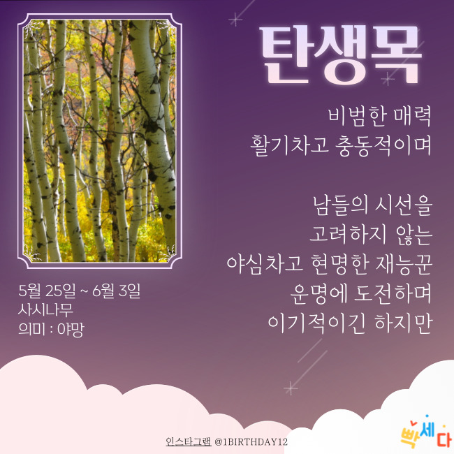 5월 25일 ~ 6월 3일은 "사시나무" 예요.