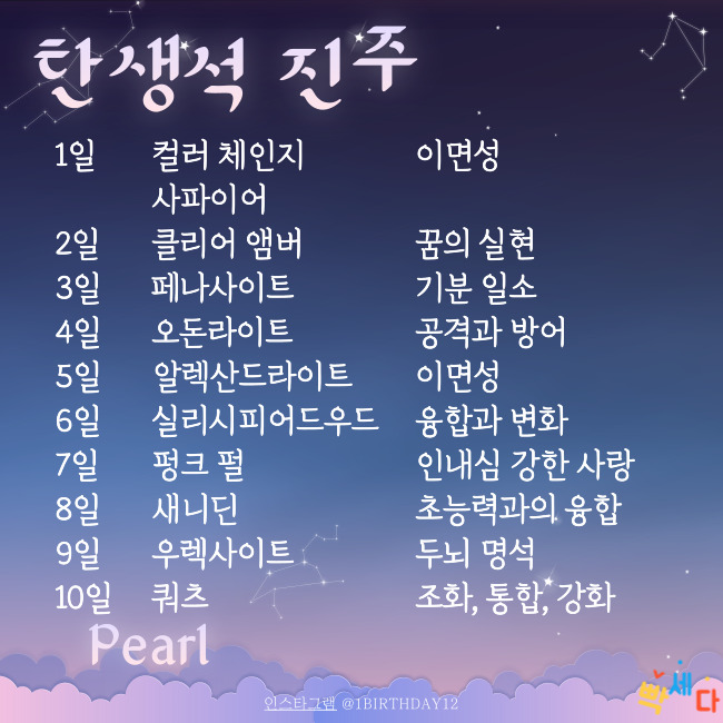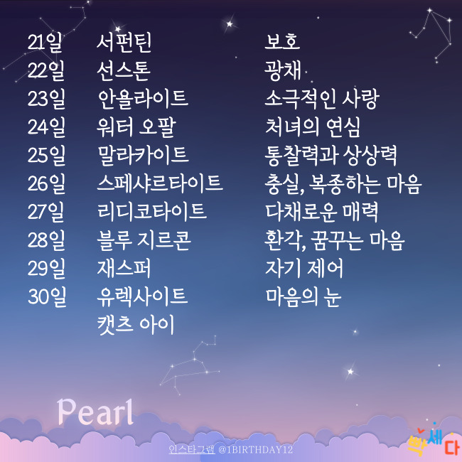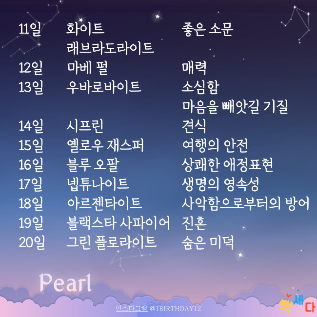 | 6월 11일 | 중국패모 | 위엄 | 화이트 래브라도라이트 |