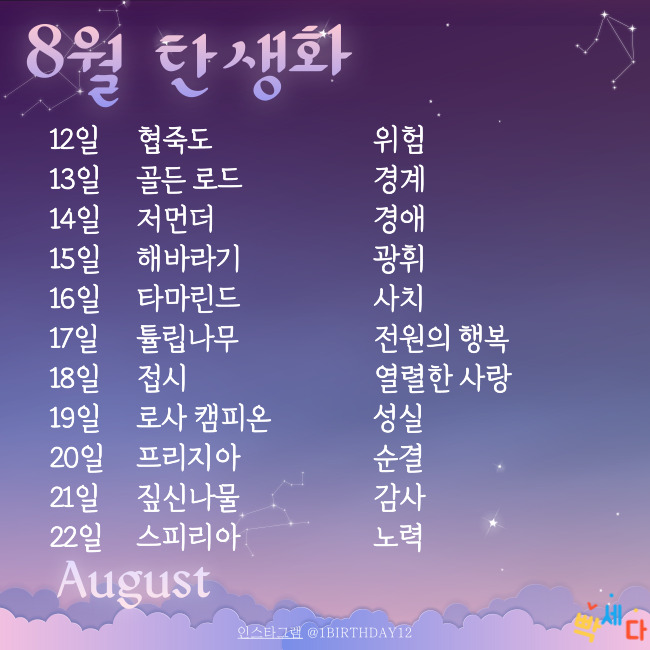 8월 12일은 무슨 날? 당신의 생일! 탄생화 탄생석 탄생목 8월 12일 탄생일 알아보기 꽃점과 꽃말로