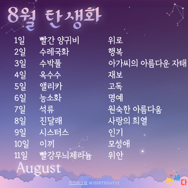 8월 11일은 무슨 날? 당신의 생일! 탄생화 탄생석 탄생목 8월 11일 탄생일 알아보기 꽃점과 꽃말로