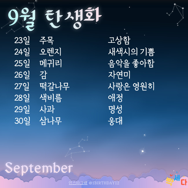 이번 내용은 9월 탄생화 탄생석 탄생목을