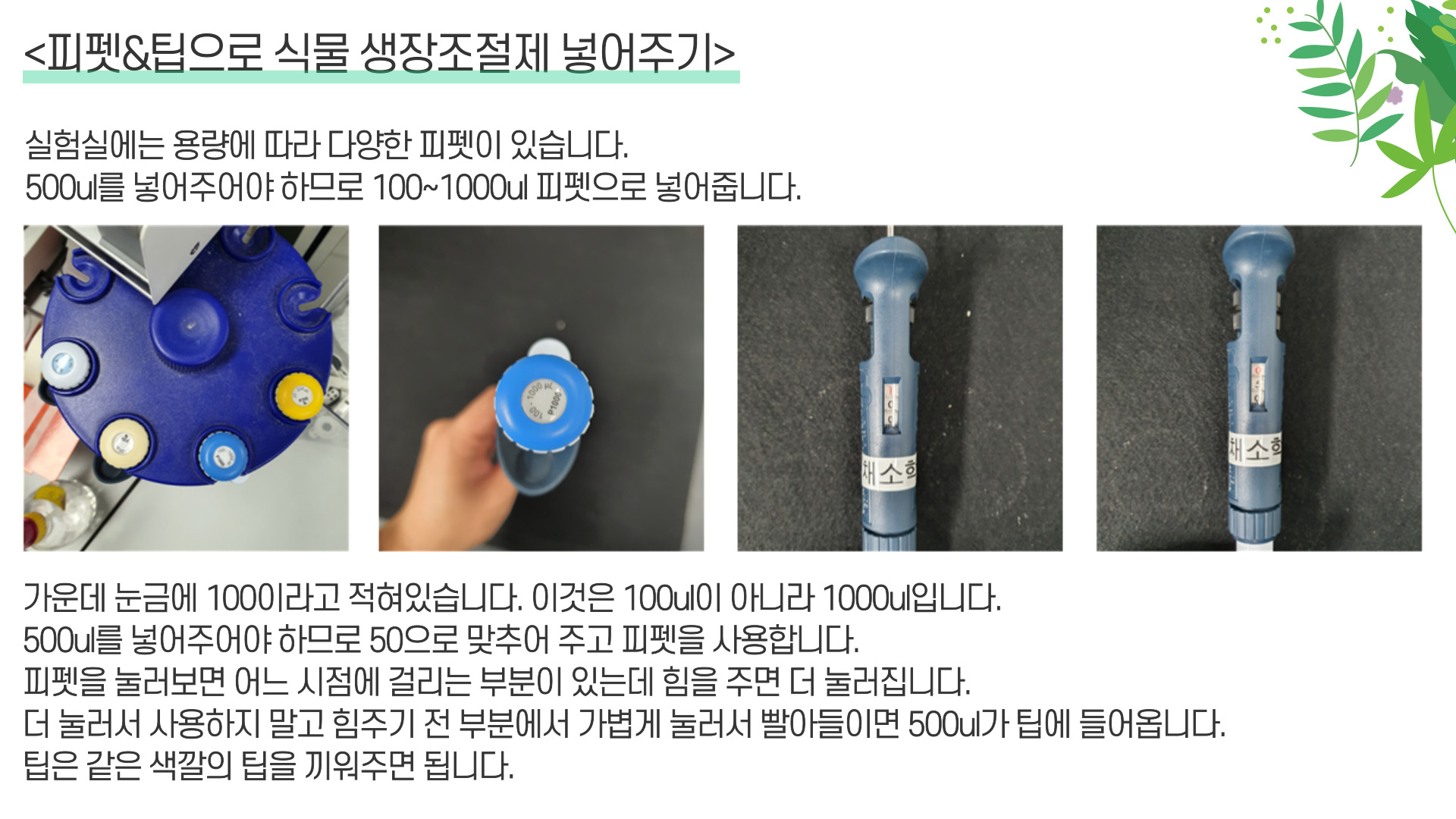 | 피펫 | 호르몬 첨가시 정확한 양 조절 |