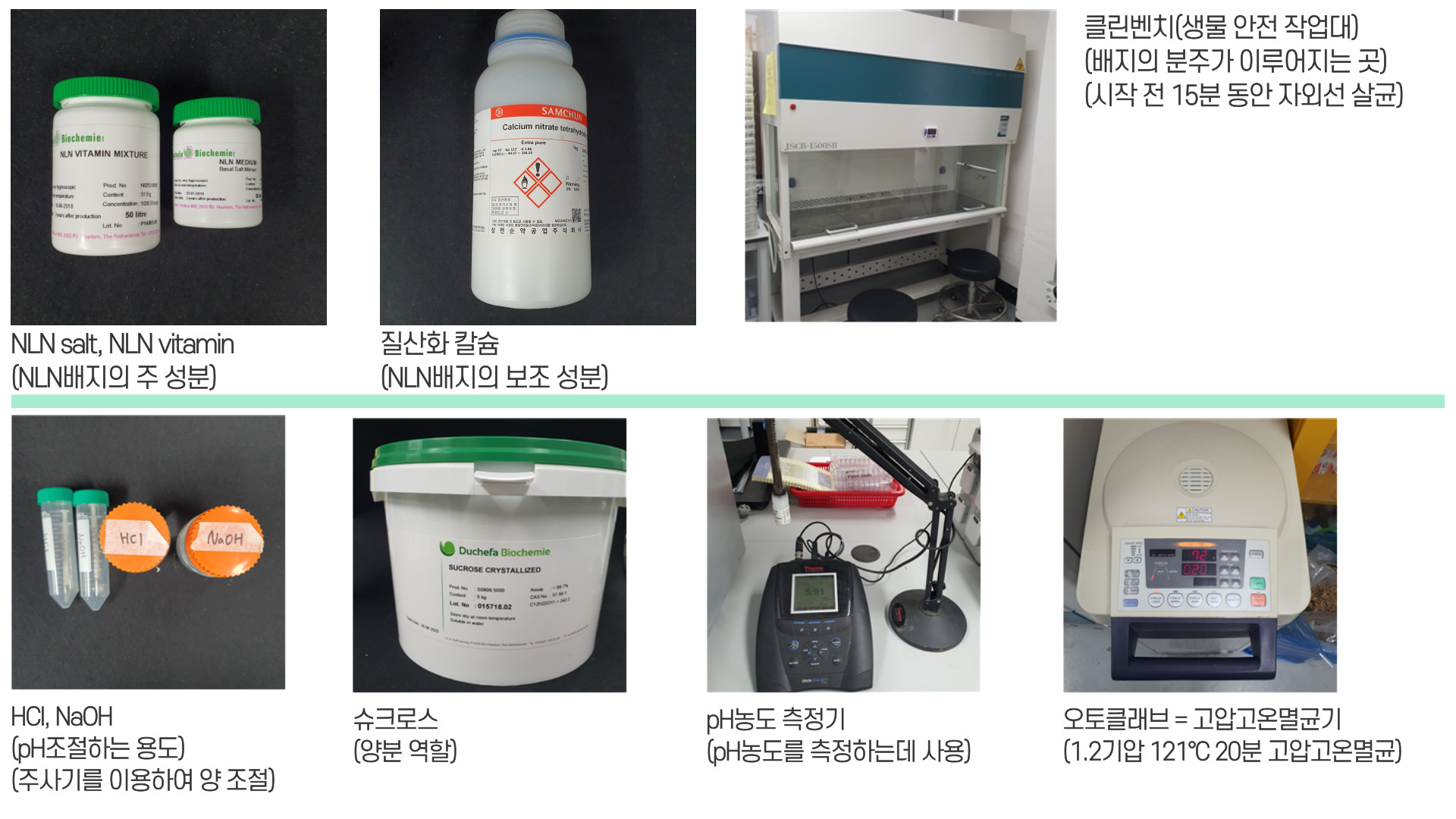 | HCl, NaOH | pH조절하는 용도 주사기를 이용하여 양 조절 |
